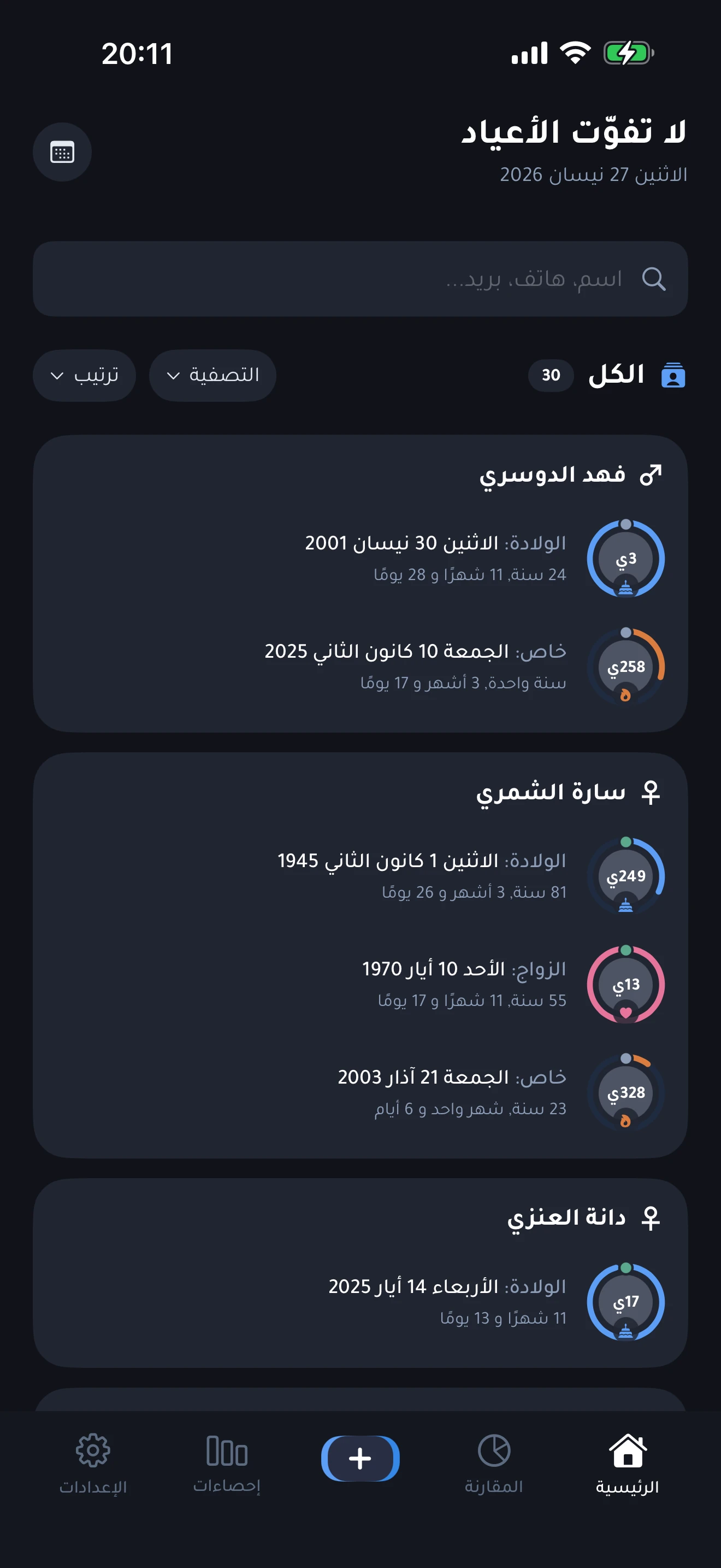 التطبيقُ الأشمل للتذكير بأعياد الميلاد، وحساب الأعمار، ومتابعة ذكرى الزواج على iPhone