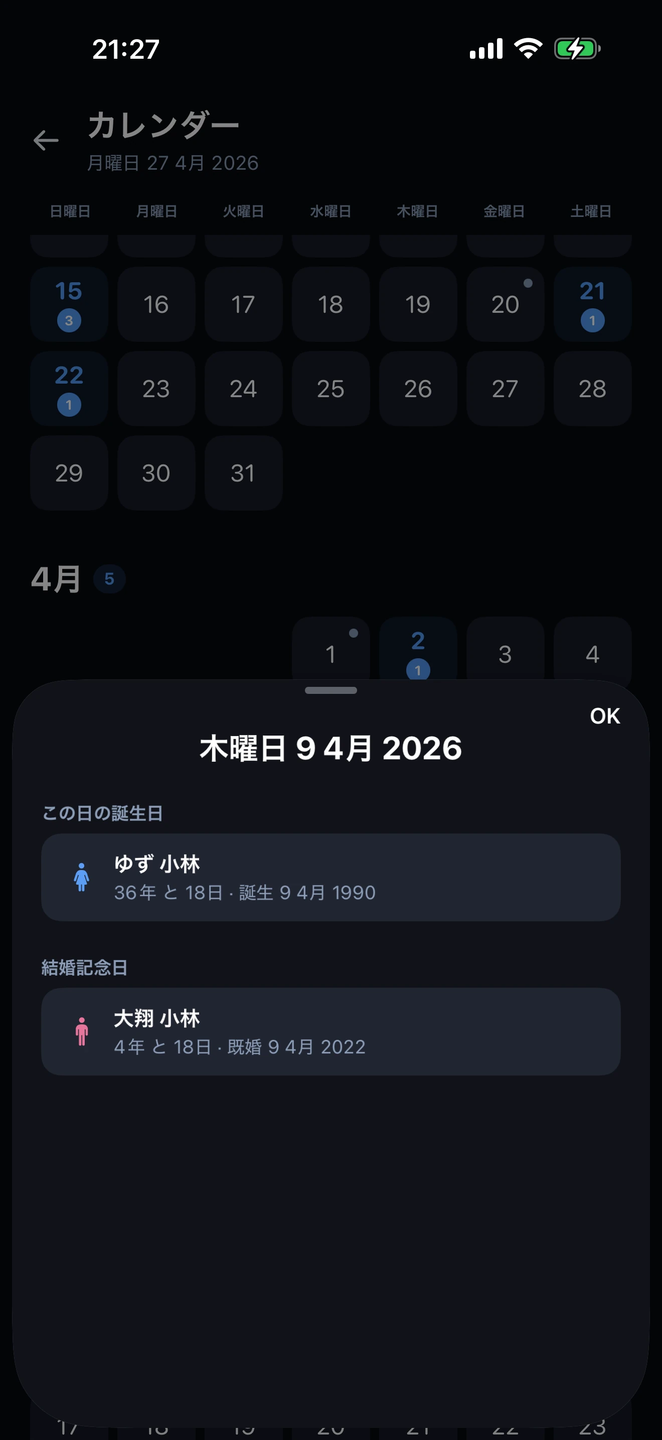 大切な人の重要な日付をすべて記録