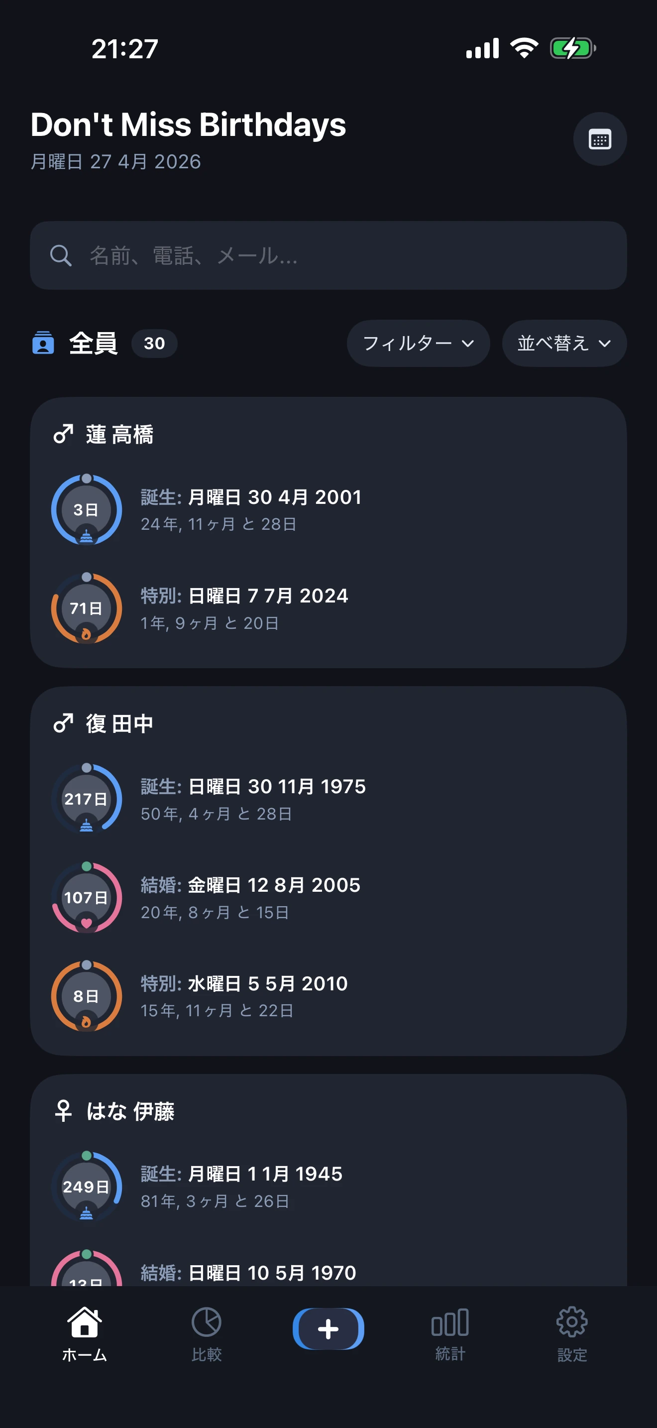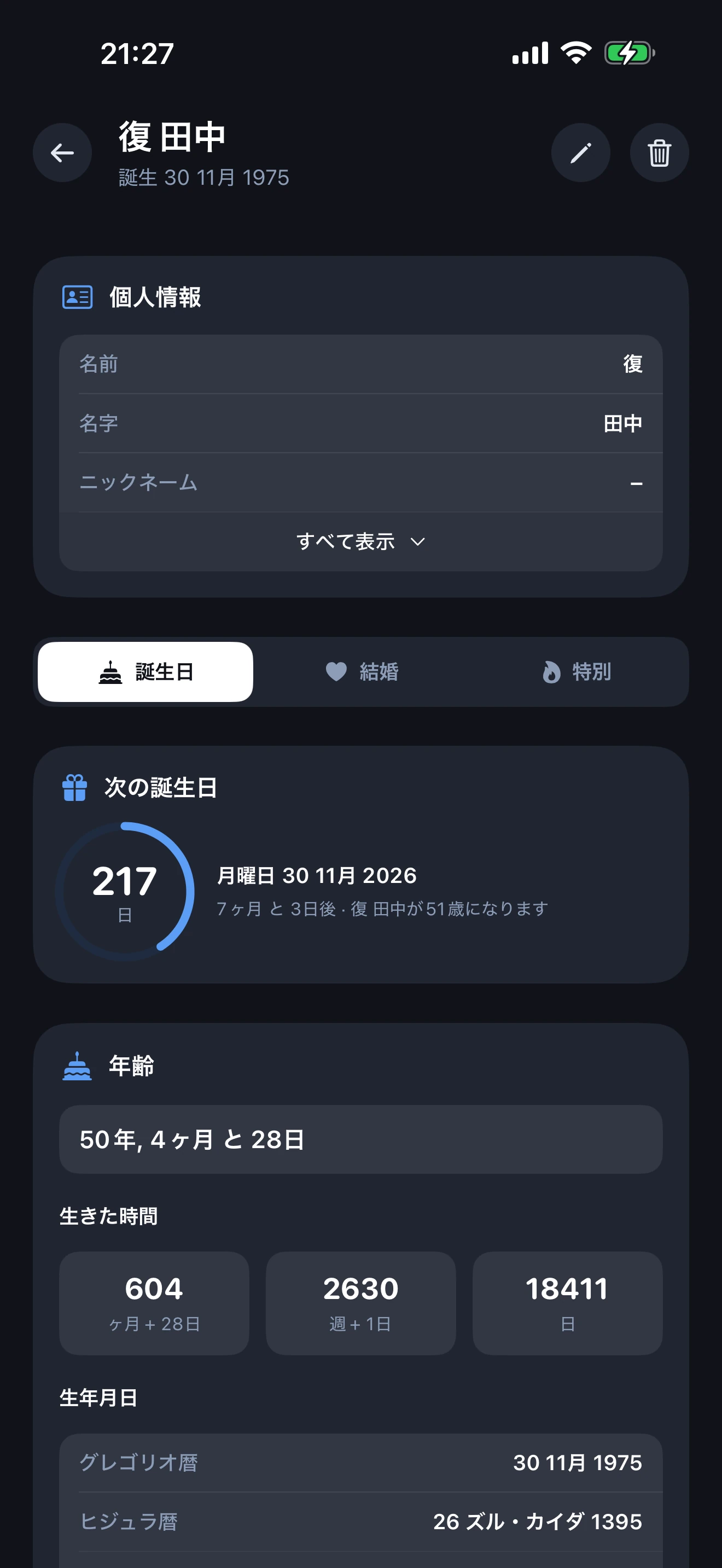 iOS 用の無料・オフライン対応の誕生日リマインダー、年齢計算機、結婚記念日トラッカーをダウンロード。アカウント不要。プライバシー優先。マルチカレンダー。14 言語。